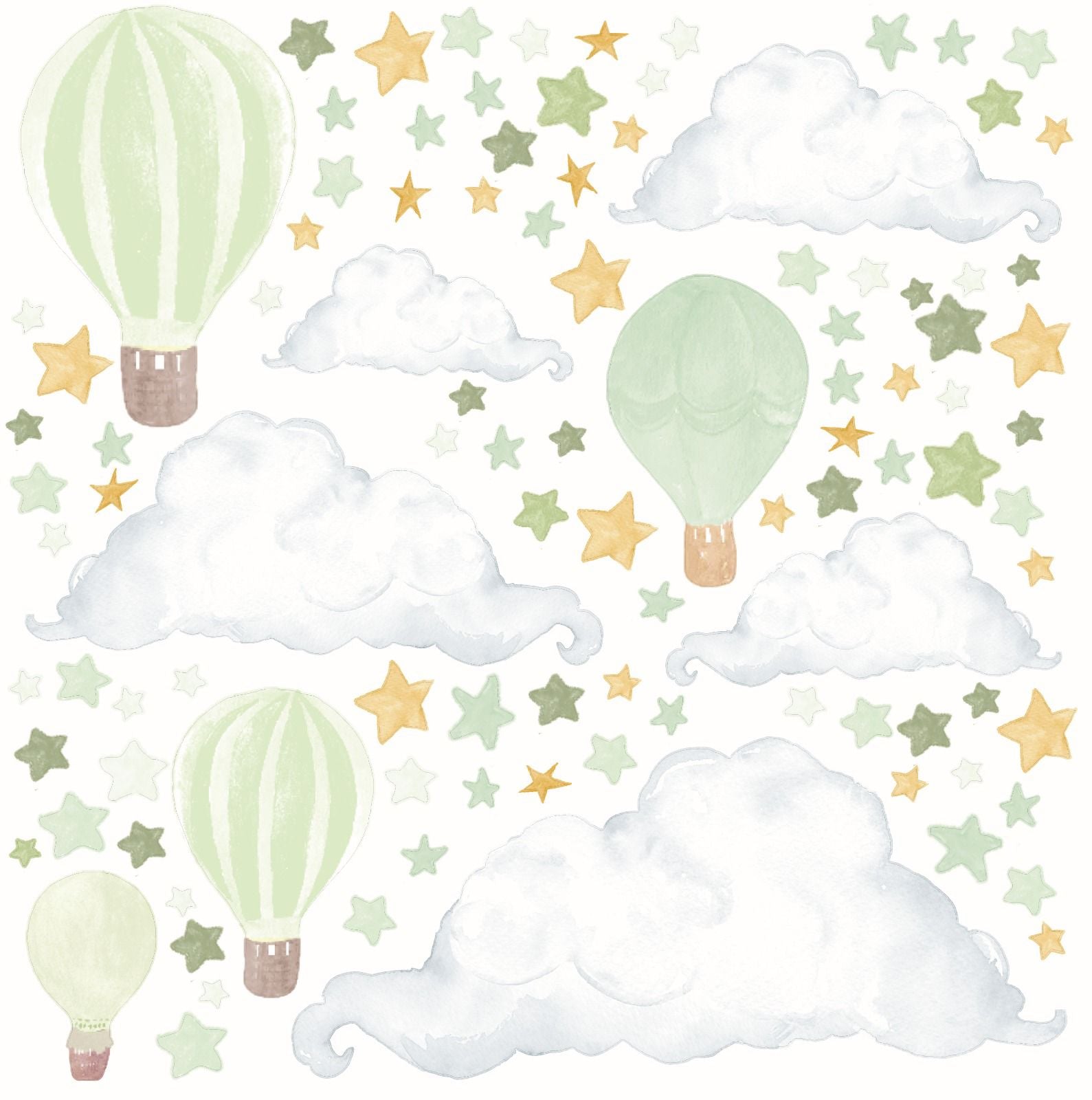 Suluboya Bulut & Balon Light Green XL Duvar Etiket
