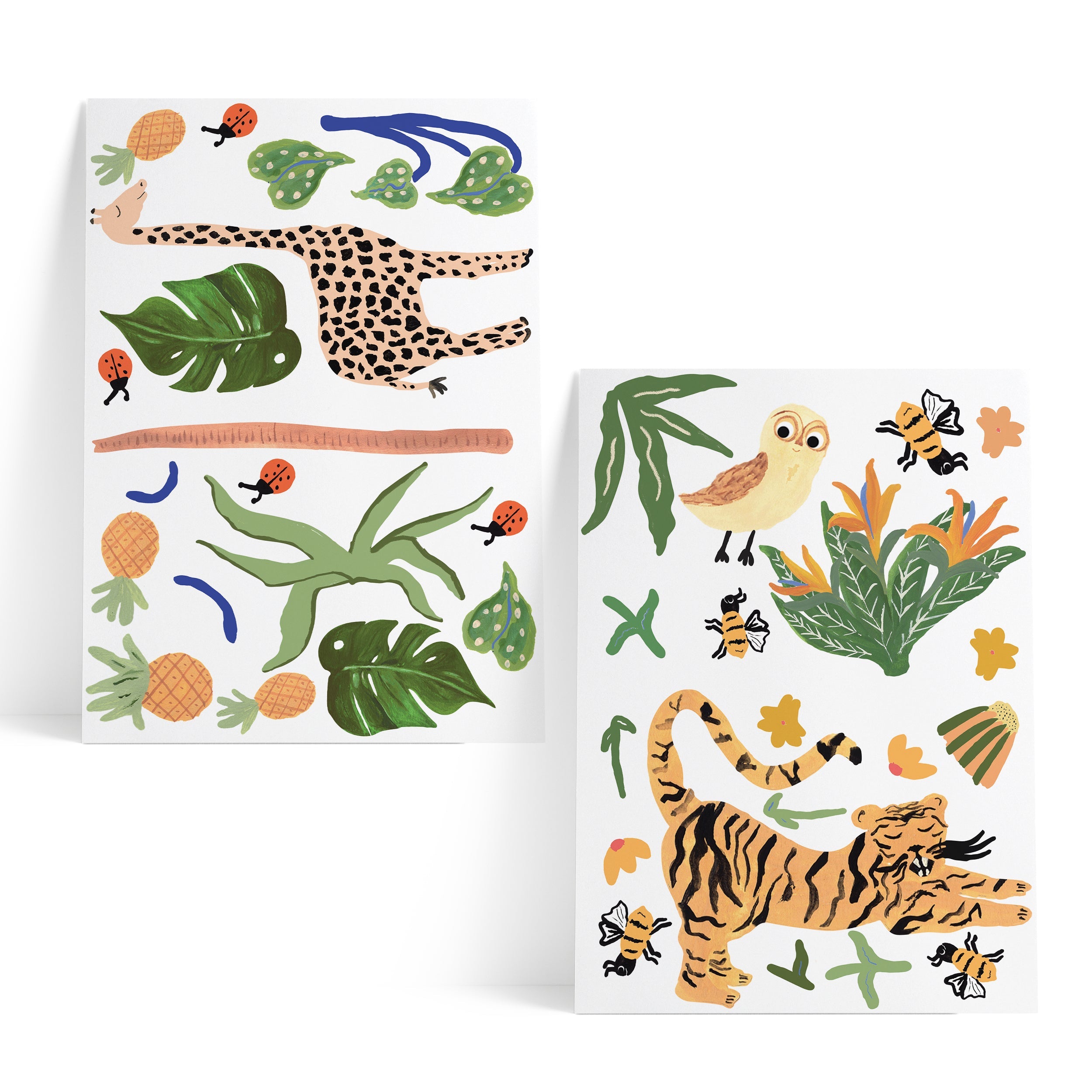 Tropikal Hayvanlar İkili Duvar Etiketi