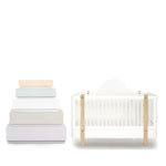 Avrupa Standartlari sertifikalı Bulut beşiğimiz 3 kademelidir. Sonradan önü açılır ve koltuk olarak kullanılabilinir. Italyan su bazlı boya, Finlandiya kontraplağı ve mdf kullanılmıştır. Sonradan çocuk yatağına dönüşür, boyutu büyümez.