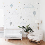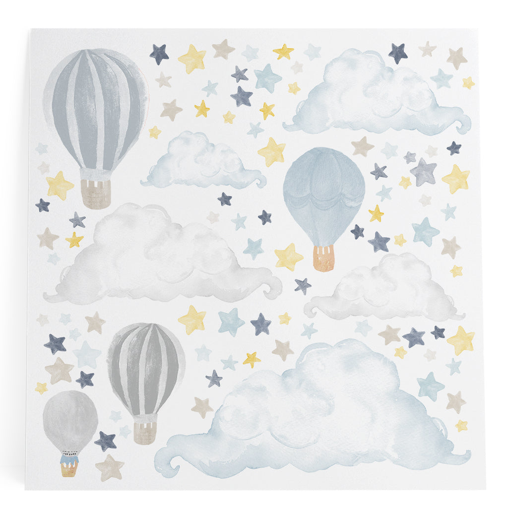 Suluboya Bulut & Balon Mavi XL Duvar Etiket