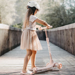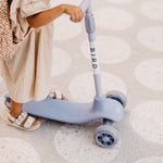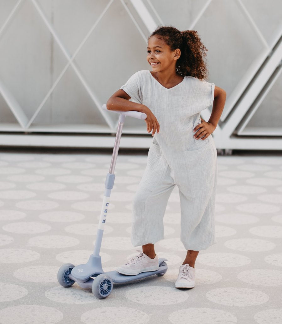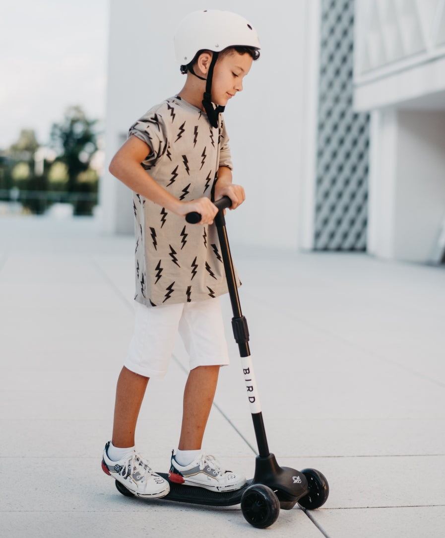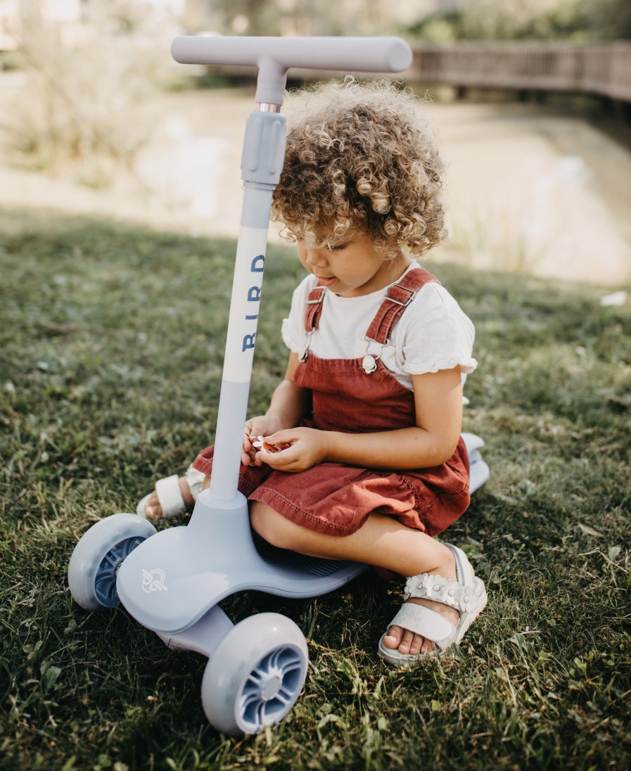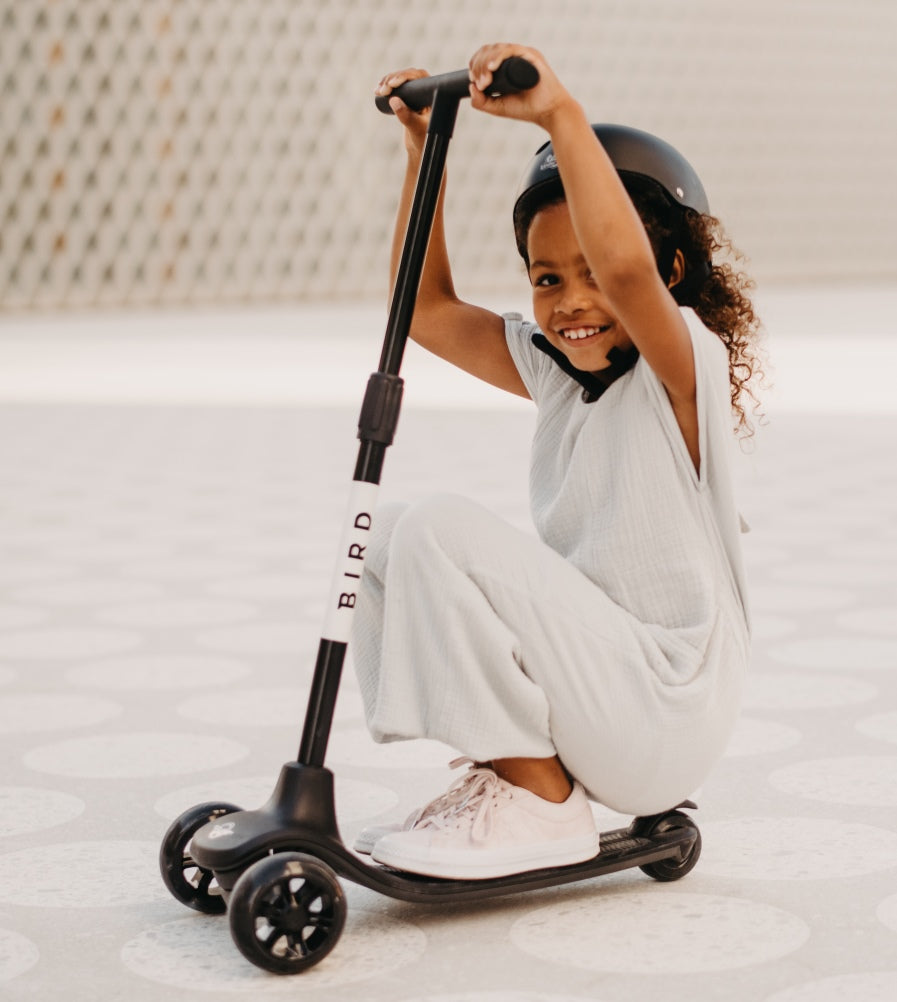 For little ones to ride with style, the new Birdie Glow is the latest Bird kids scooter whose wheels sparkle as it moves. The Birdie Glow is a foot powered non electric scooter for ages 3 and up. Its height-adjustable T-handlebar, "tilt and steer" stem and three-wheel design allow it to fly with large Birds.