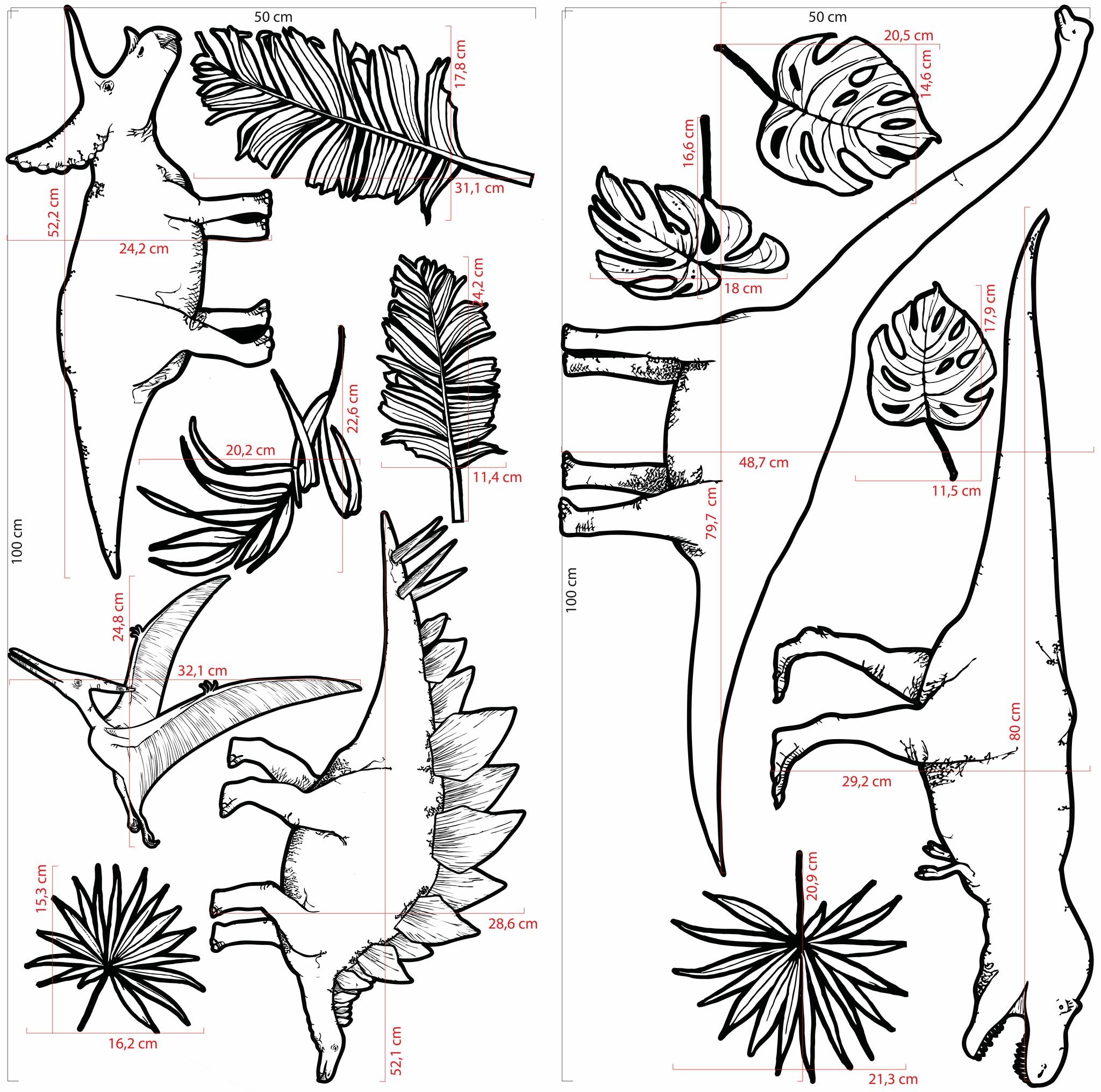 5 dinosaurs (80x49cm-25x32cm)