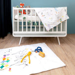 You can use this product as a play mat or instead of a quilt to warm your baby on cold nights. You can create a very comfortable corner of pleasure with the cloud pillow with the same pattern.