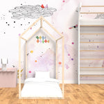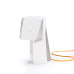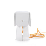 Our lamp is made of powder coated sheet metal and colored cord bent into a dog shape. You will see a sweet light play with the nose detail.