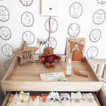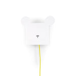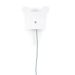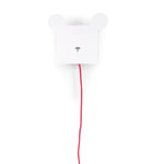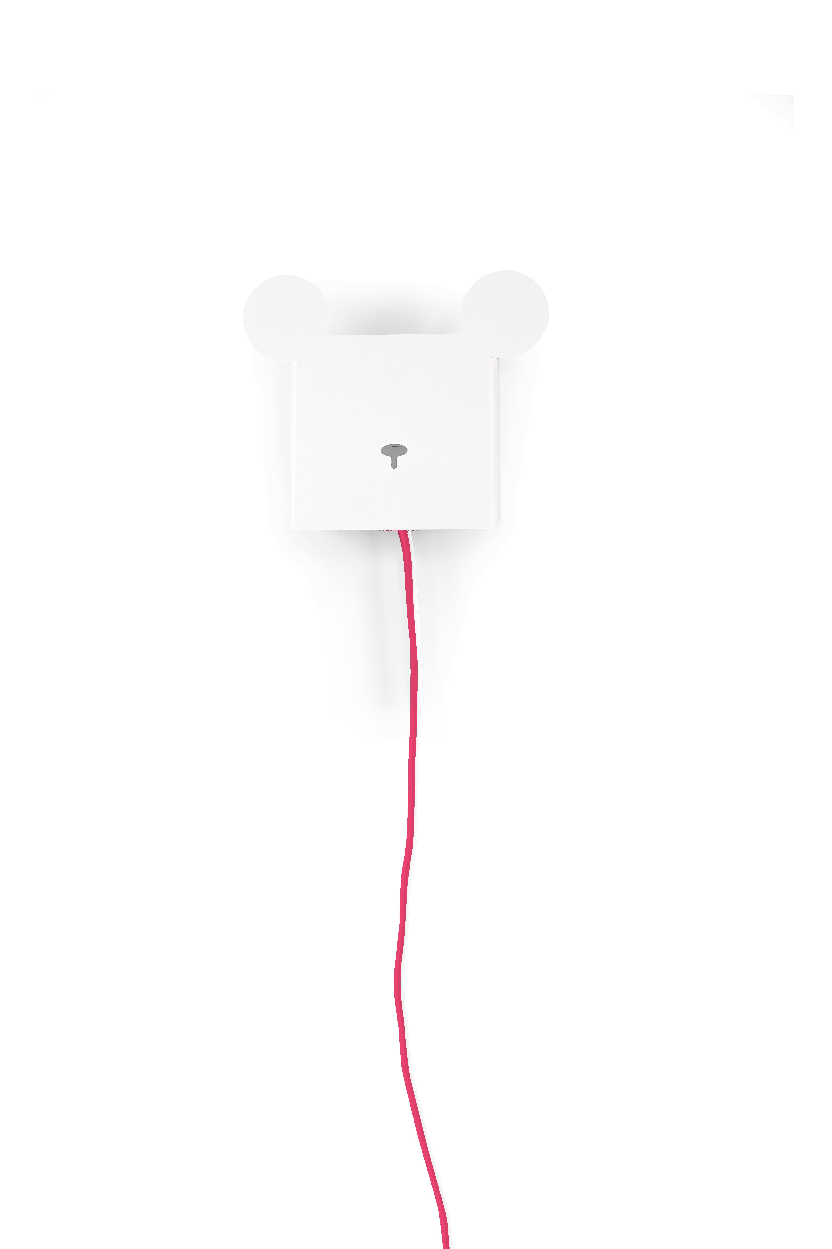 Our lamp is made of powder coated sheet metal and colored cord bent into a teddy bear shape. You will see a sweet light play with the nose detail.