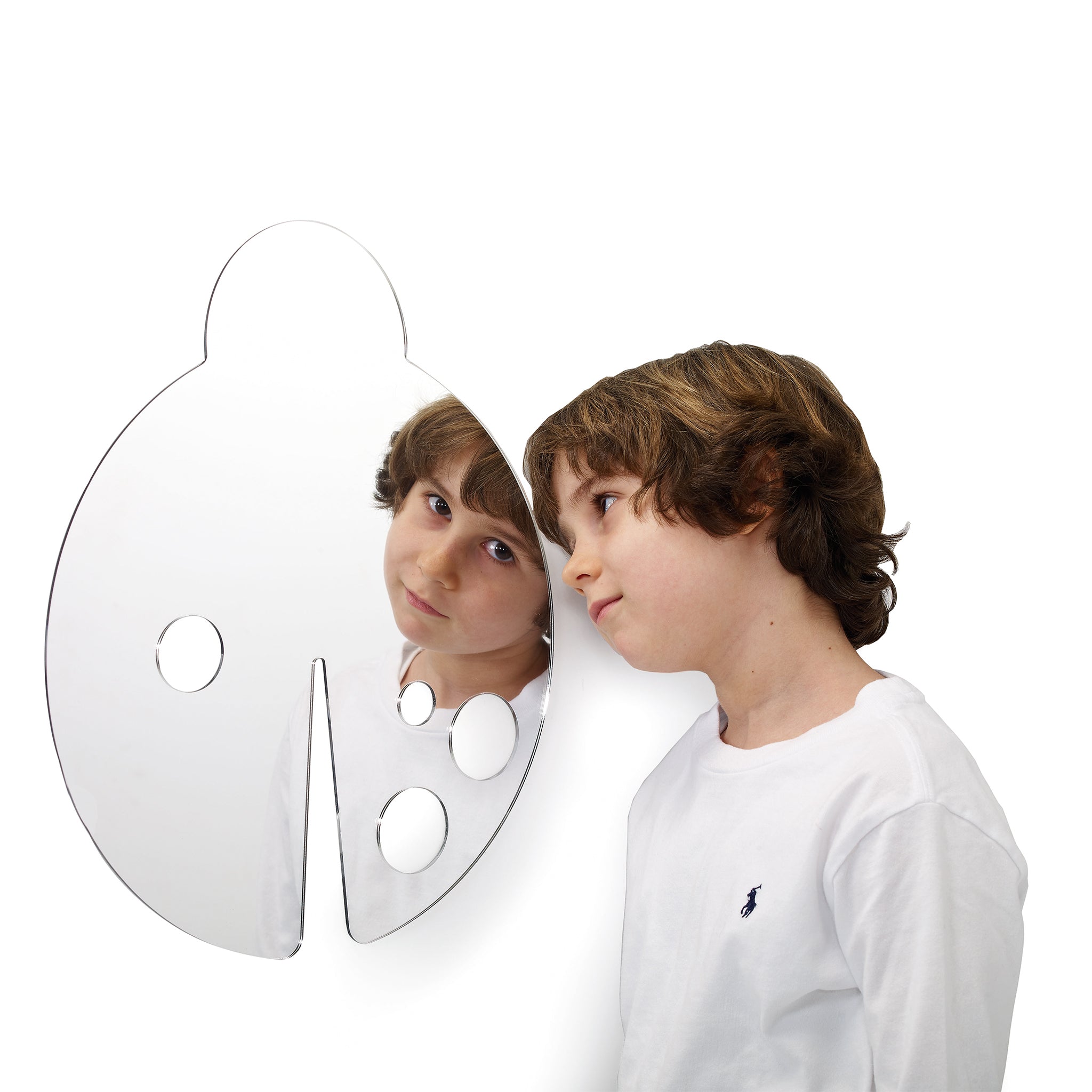 Mirrors can be used as both fun and educational elements, especially in children's rooms. Mirrors are an important tool for children to discover themselves and play reflection games.