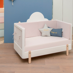 Our European Standards certified Bulut cradle has 3 stages. Later, the front opens and can be used as a seat. Italian water-based paint, Finnish plywood and MDF are used. It later turns into a child's bed, its size does not increase.