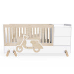 It is a compact solution from the Fox collection, designed for small spaces. It is offered with a drawer and changing mat, and can be converted into a 90×190 cm bed with the crib conversion kit.