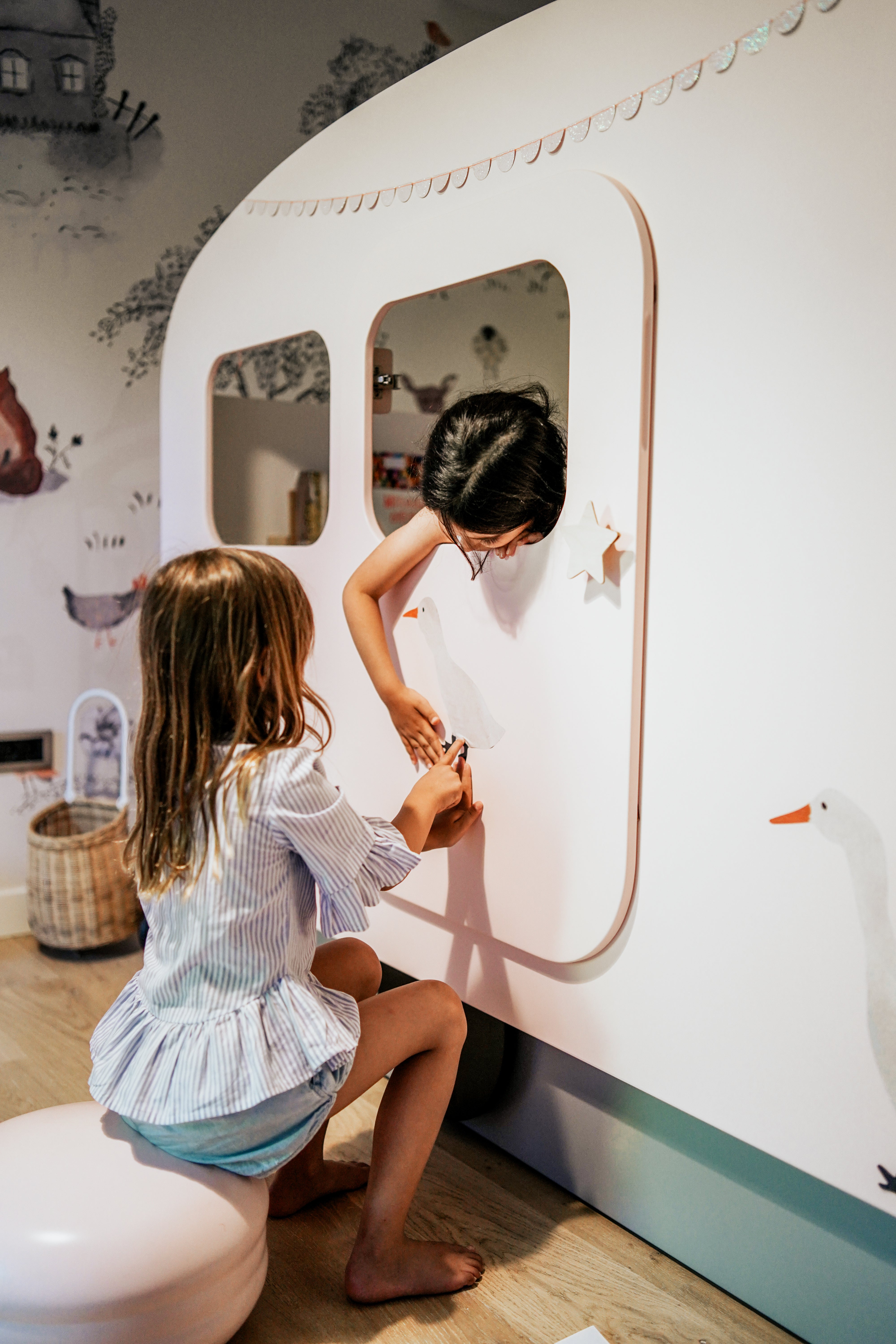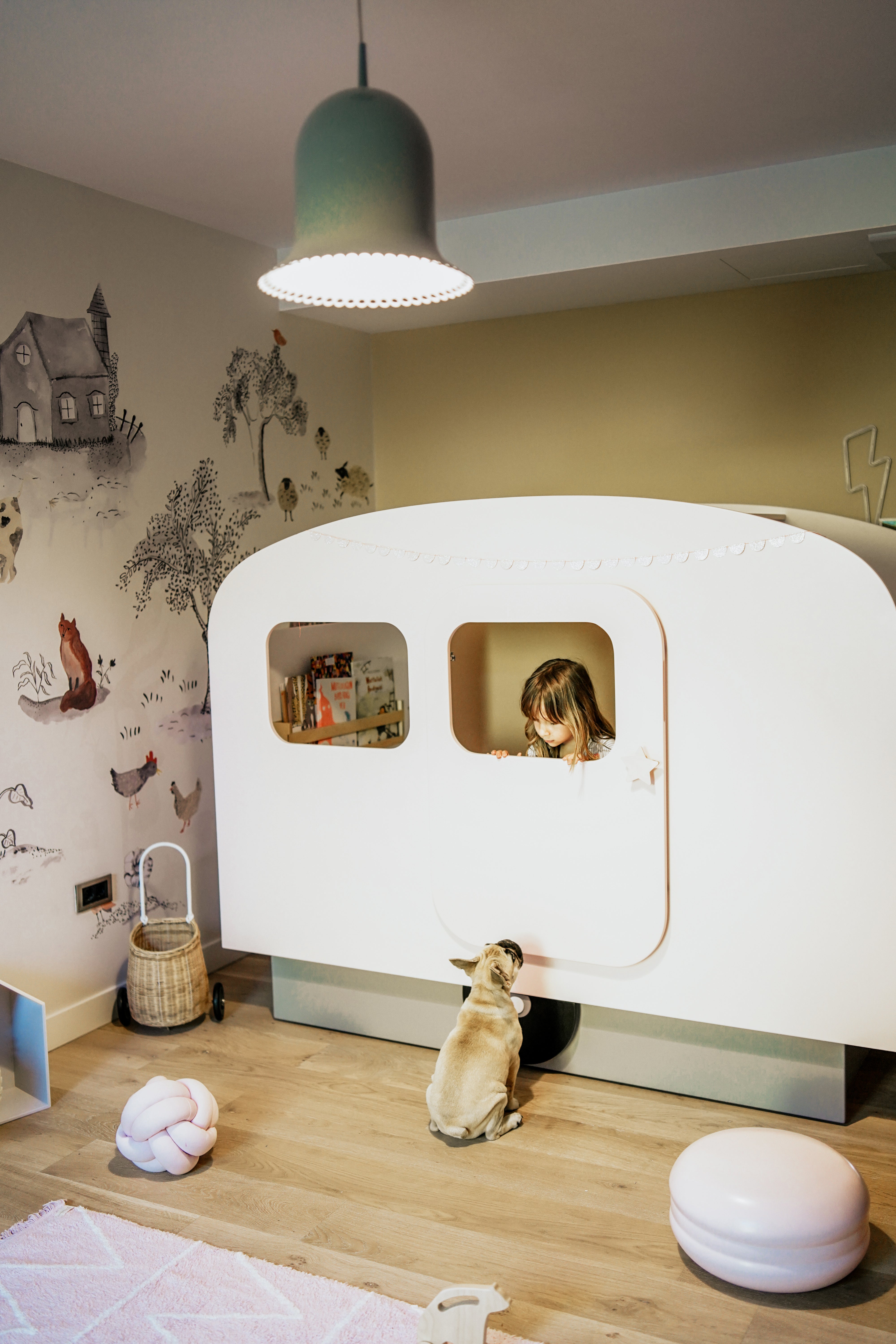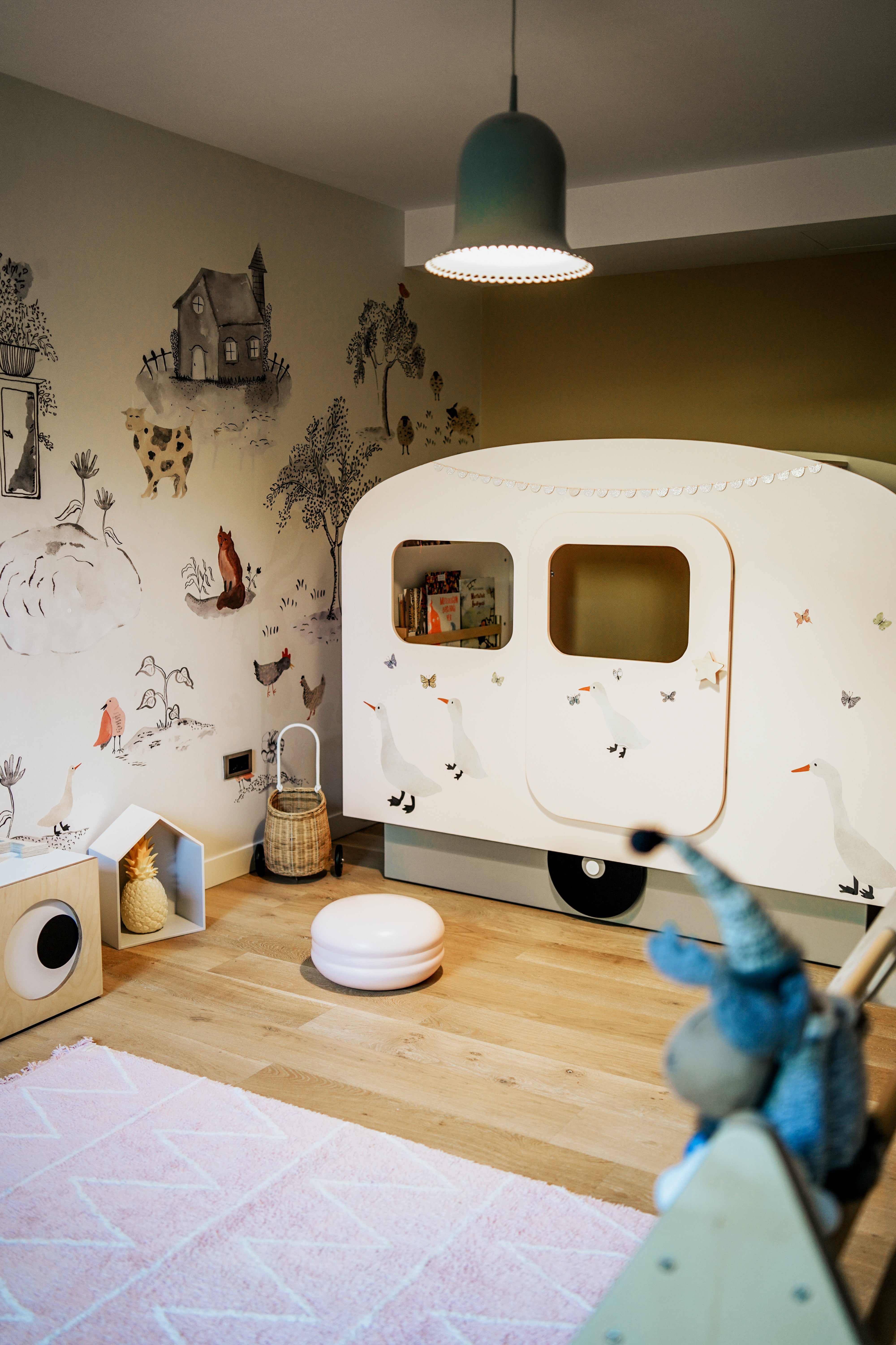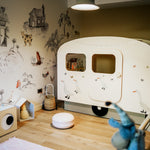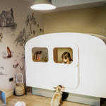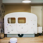 Color your children's imagination with our caravan bed. This product, which you can buy in pink, grey or blue, will add joy to your children's joy.