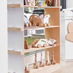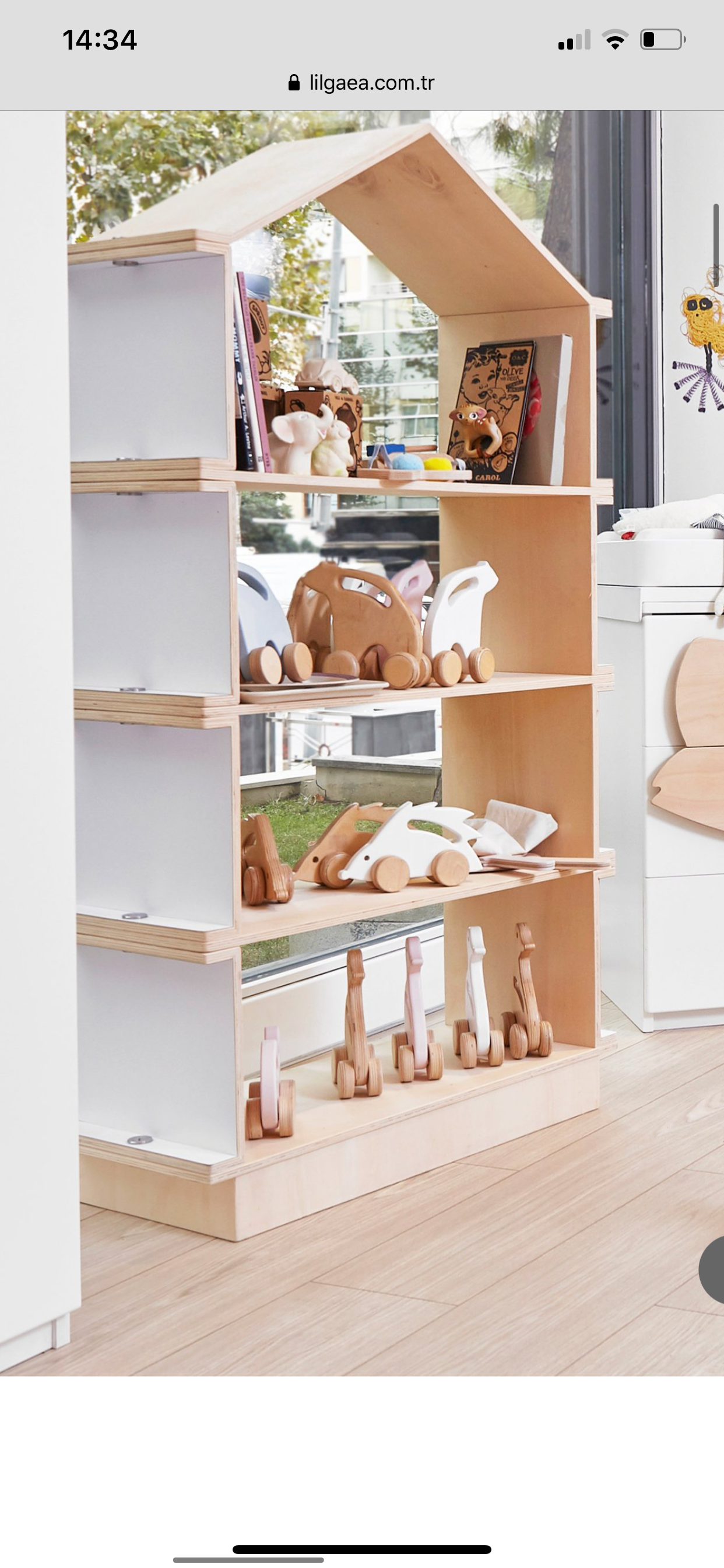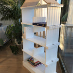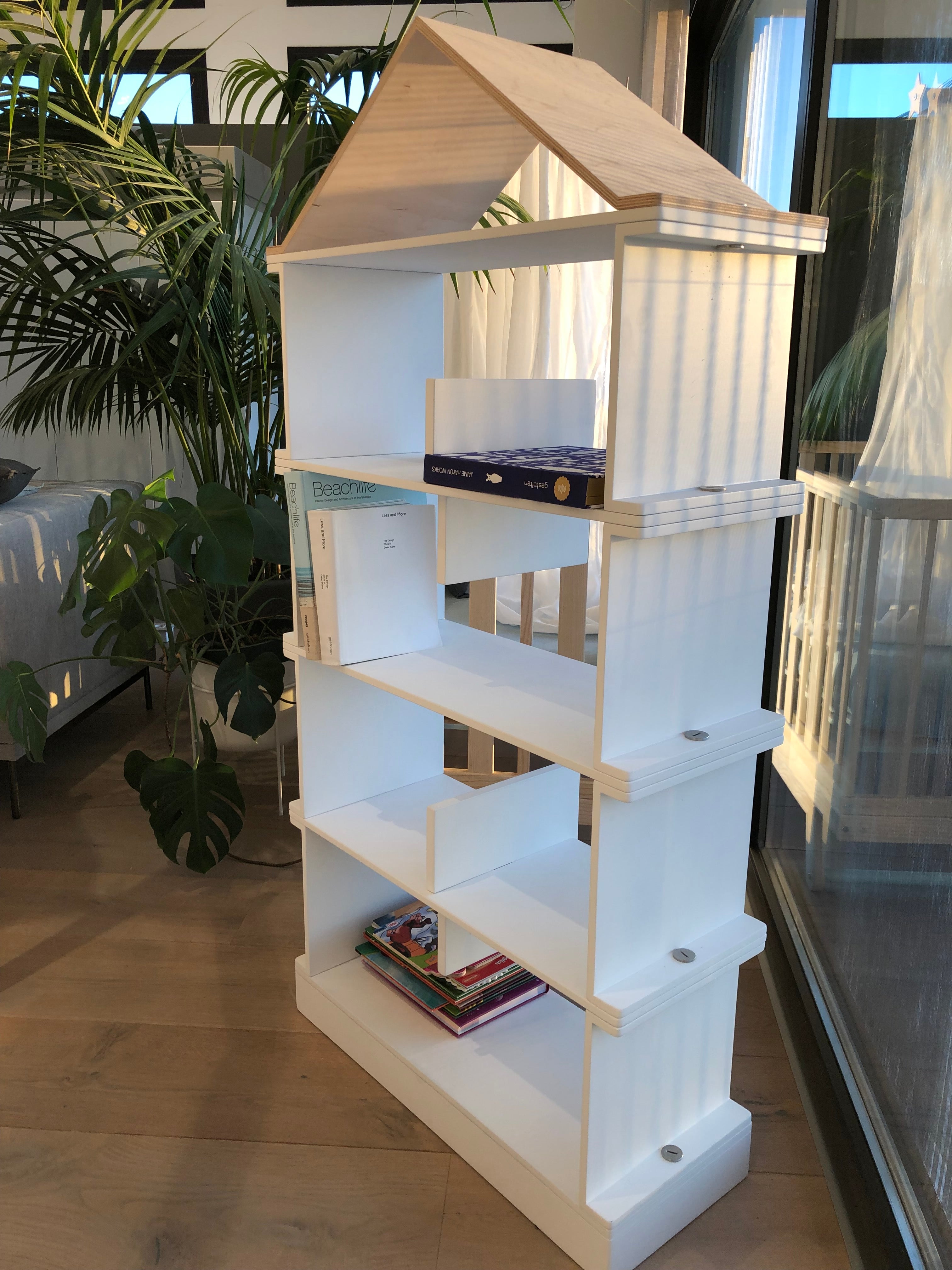 Next to the bed or desk, the house-shaped Tower with open shelves provides plenty of space for books and other decorative objects. It is loved as a bedside bookcase from the moment it starts to crawl until the age of 10.