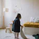 The two long ears, made of soft cotton on both sides, are mobile and add a charming and interactive touch. The rug is decorated with brown details and an extra fluffy tail to complete its charm.
