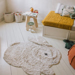 Discover the fun charm of our rabbit pattern rug. It is carefully handcrafted in natural and ivory colors, with different yarn heights mixed to give it a furry look and feel.