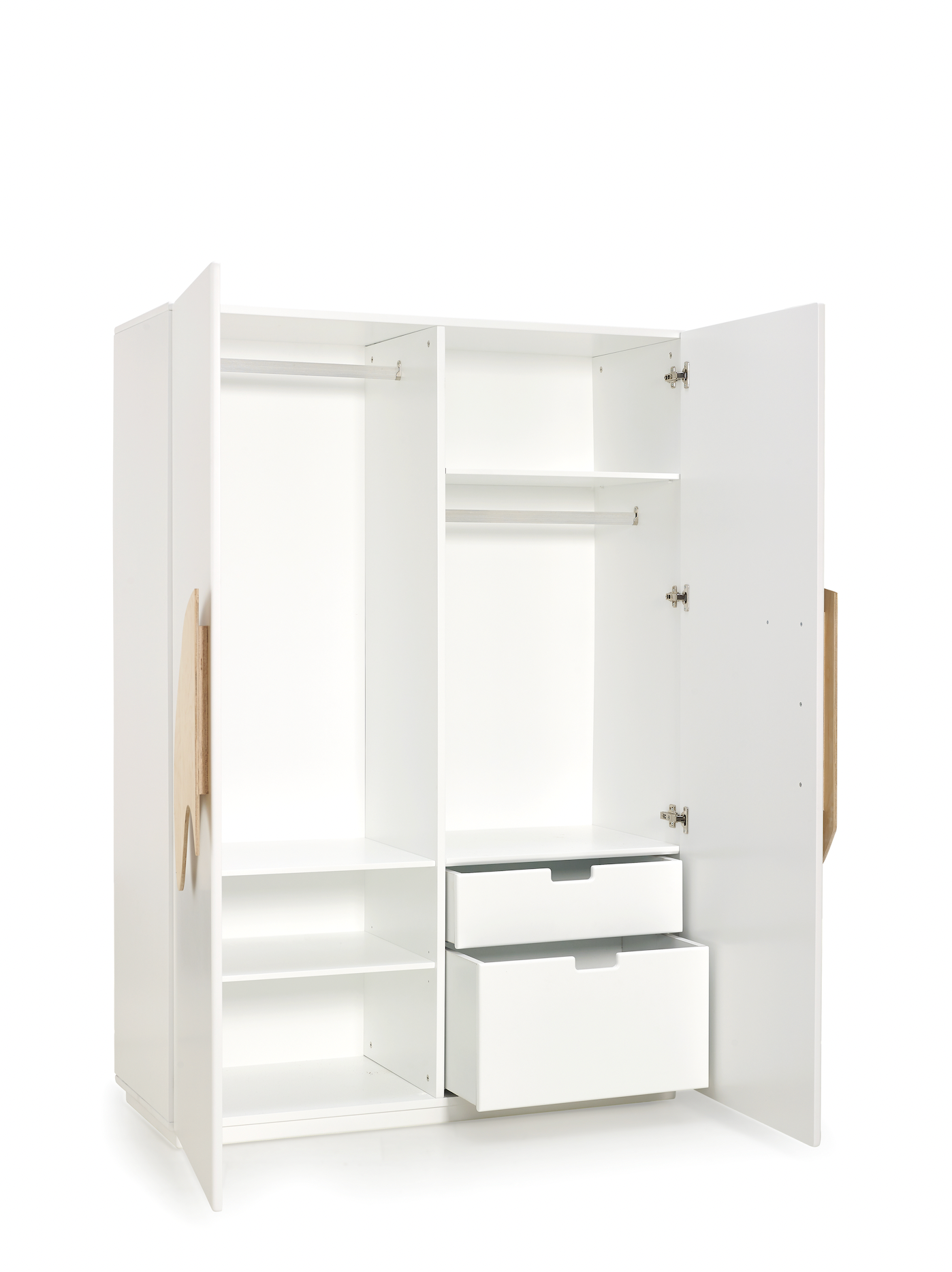 The 3-door baby wardrobe from Lil'Gaea's nursery wardrobe collection is ideal for large families and baby rooms with lots of furniture. This nursery wardrobe stands out with its practical interior organization and ample storage space. Offering numerous compartments and hanging spaces, it allows you to easily organize baby clothes, blankets, toys and more.
