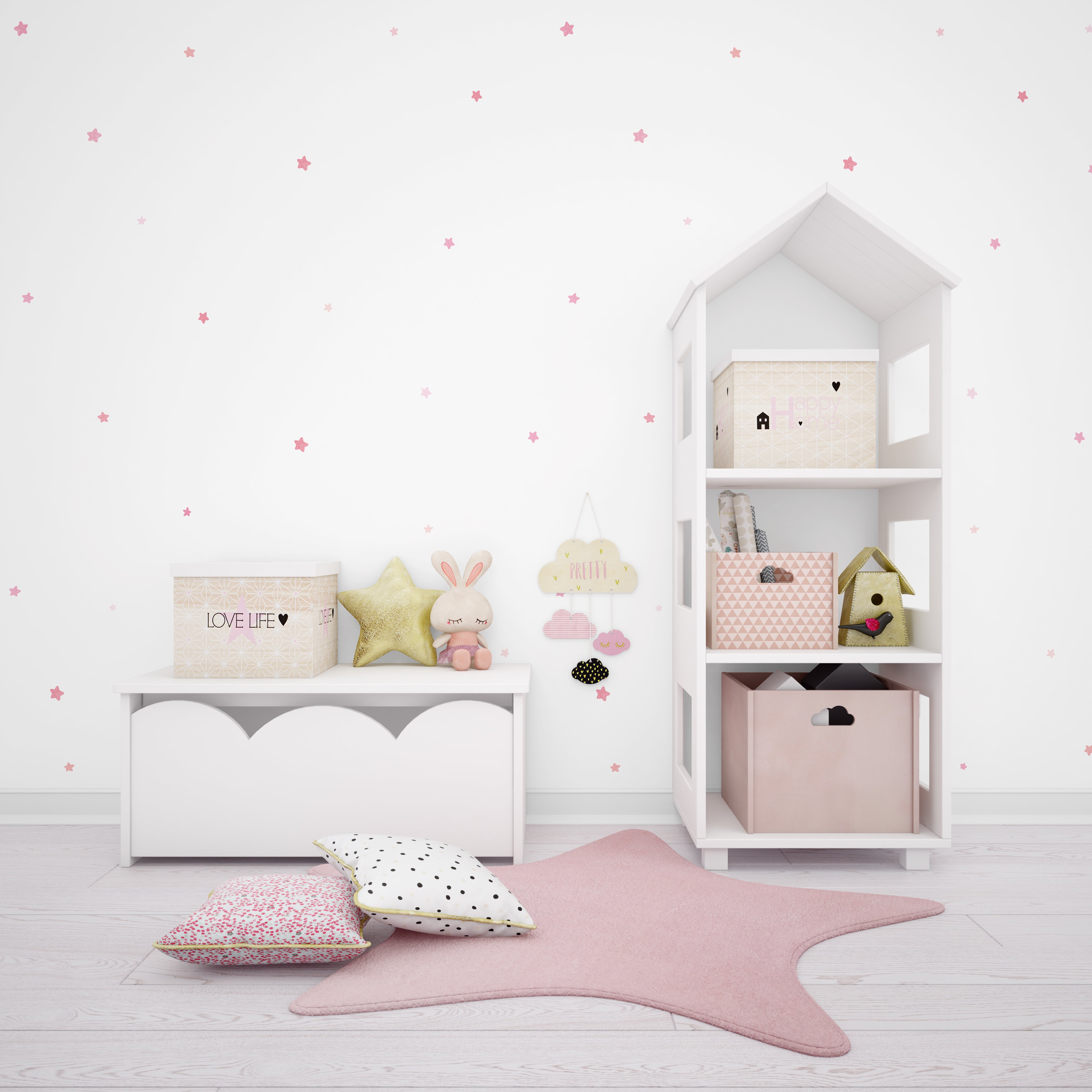 Our star pattern wallpaper is one of our favorite classics. There is a selection of beautiful colors that you can find suitable for your room.