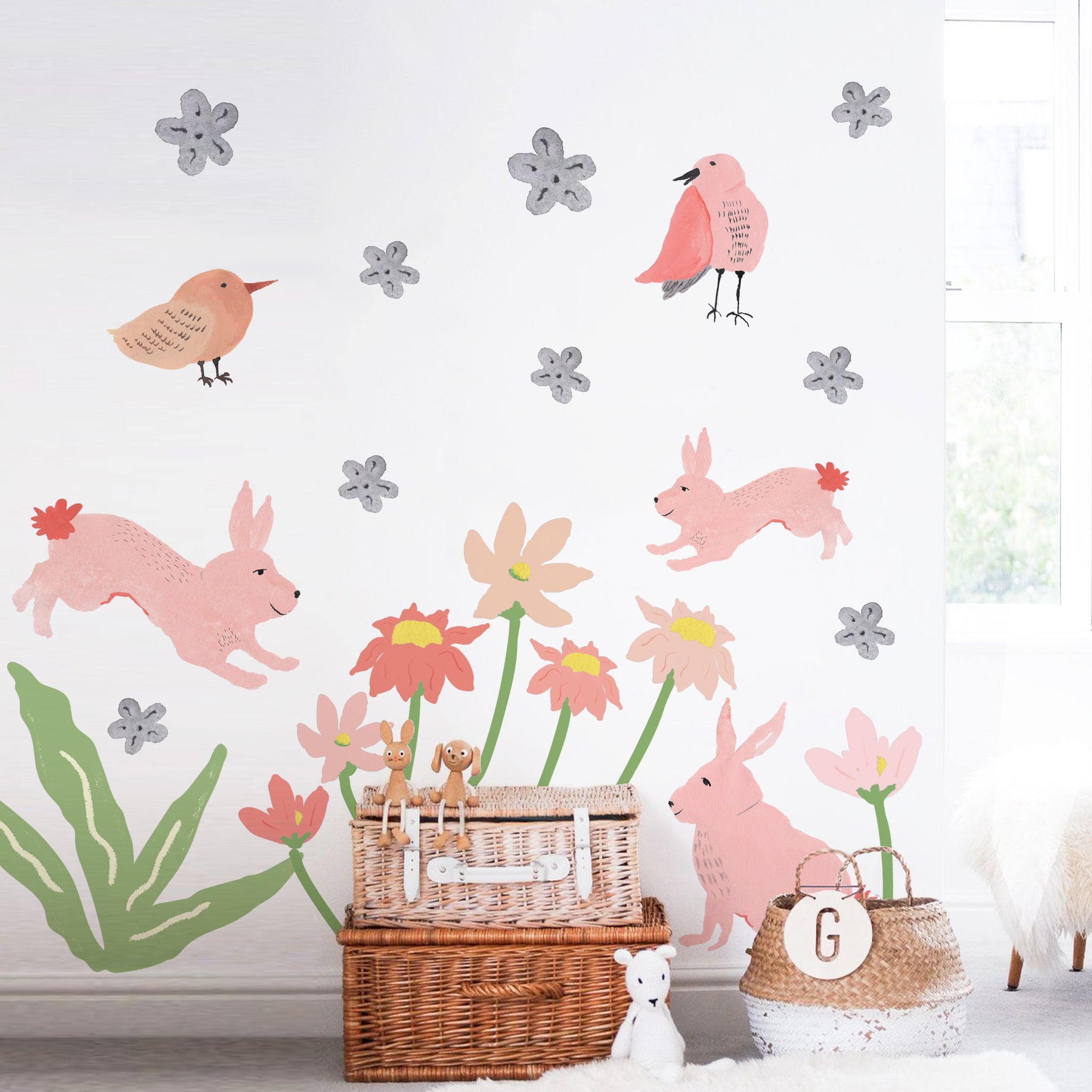 Rabbit, Bird & Flower XL Wall Sticker