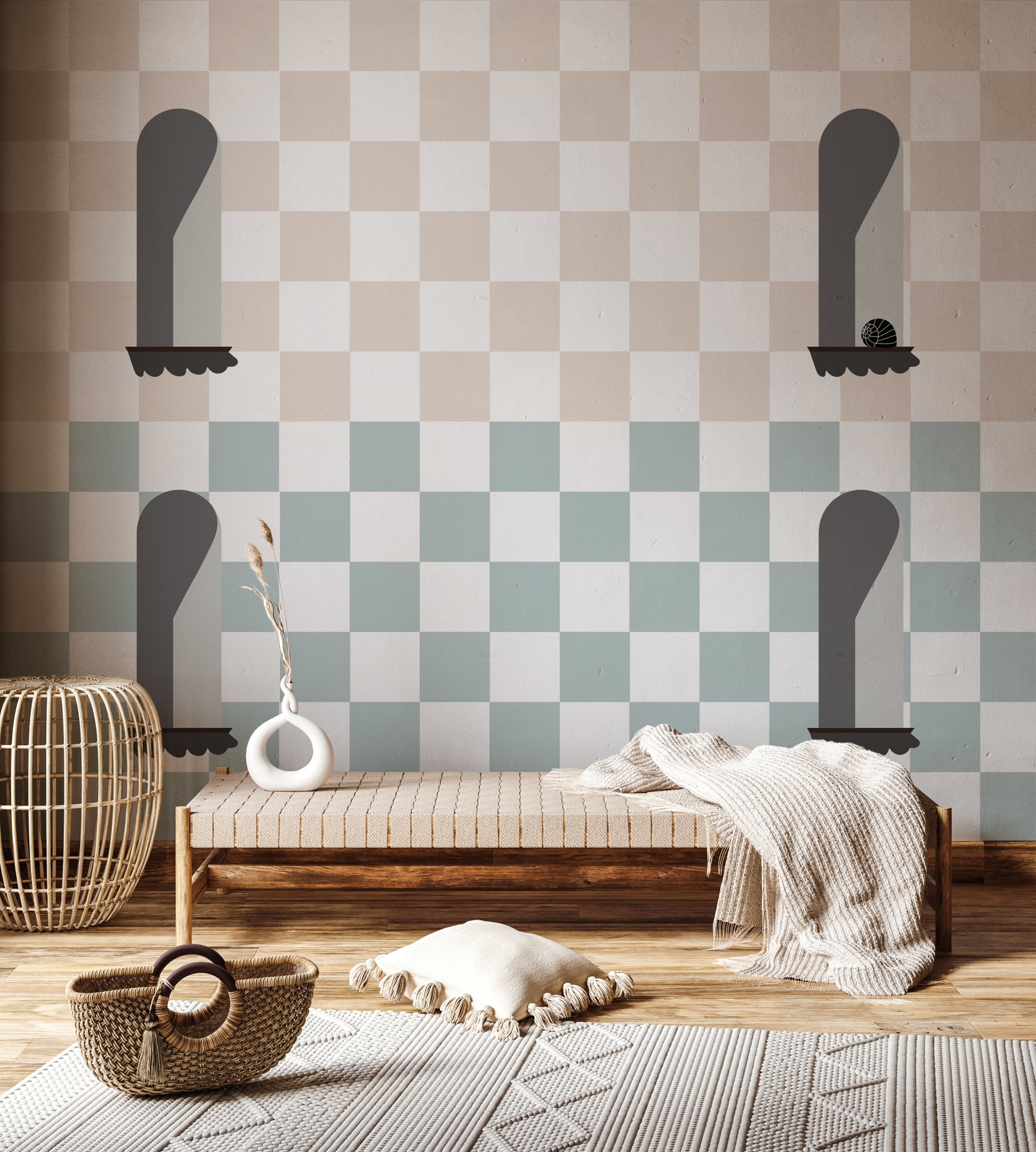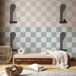 Japandi Window with Chess Blue& Cream Wallpaper GAE719