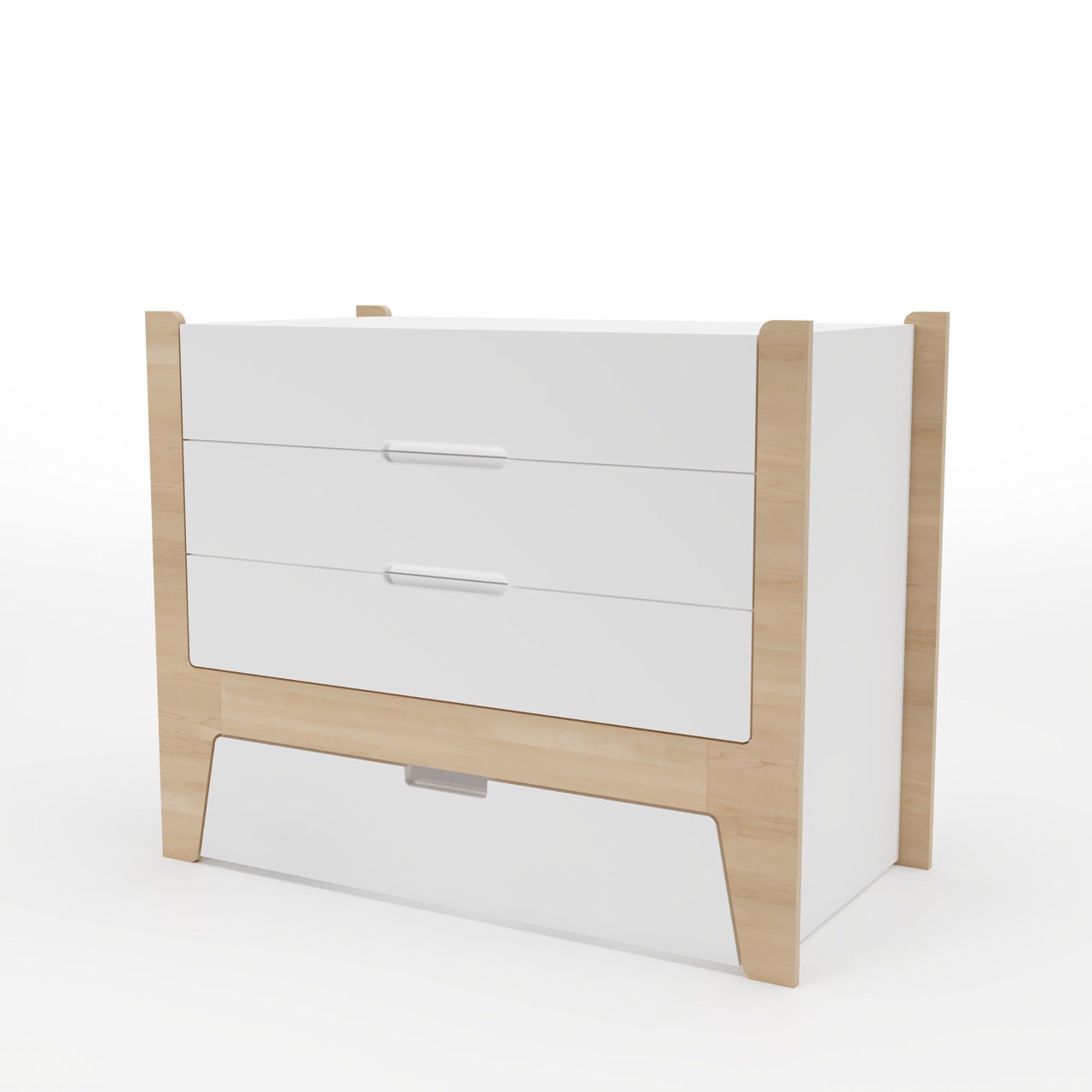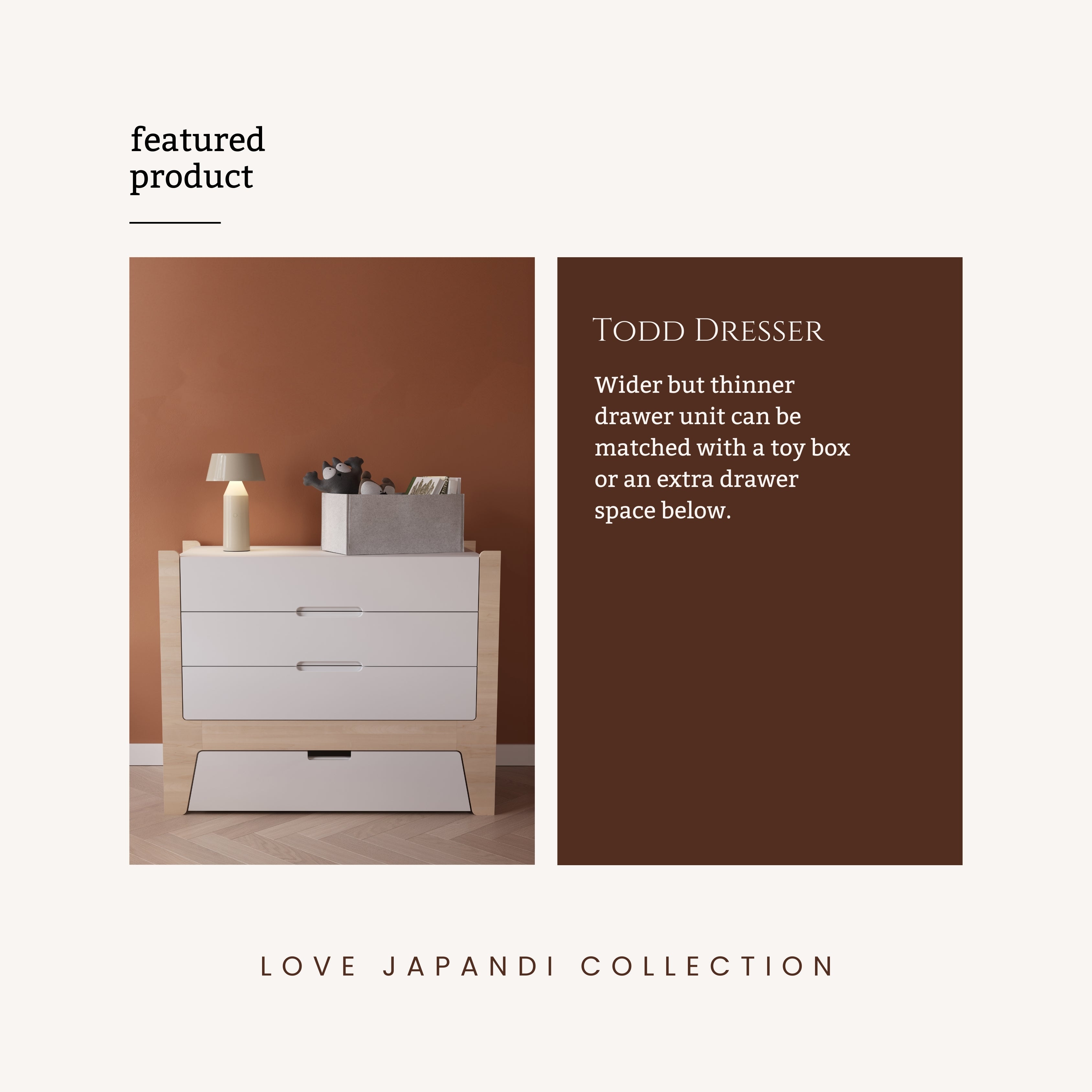 Wider but thinner drawer unit can be matched with a toy box or an extra drawer space below.