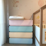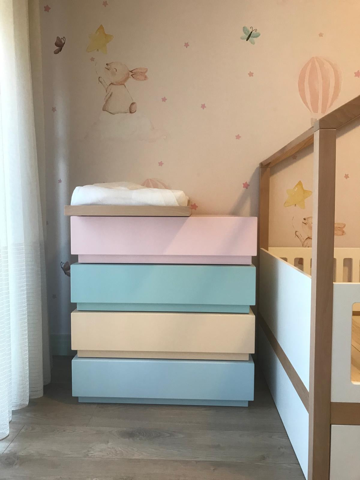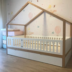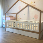 Railings and drawer or lower cot bed according to your preference are included in the price.