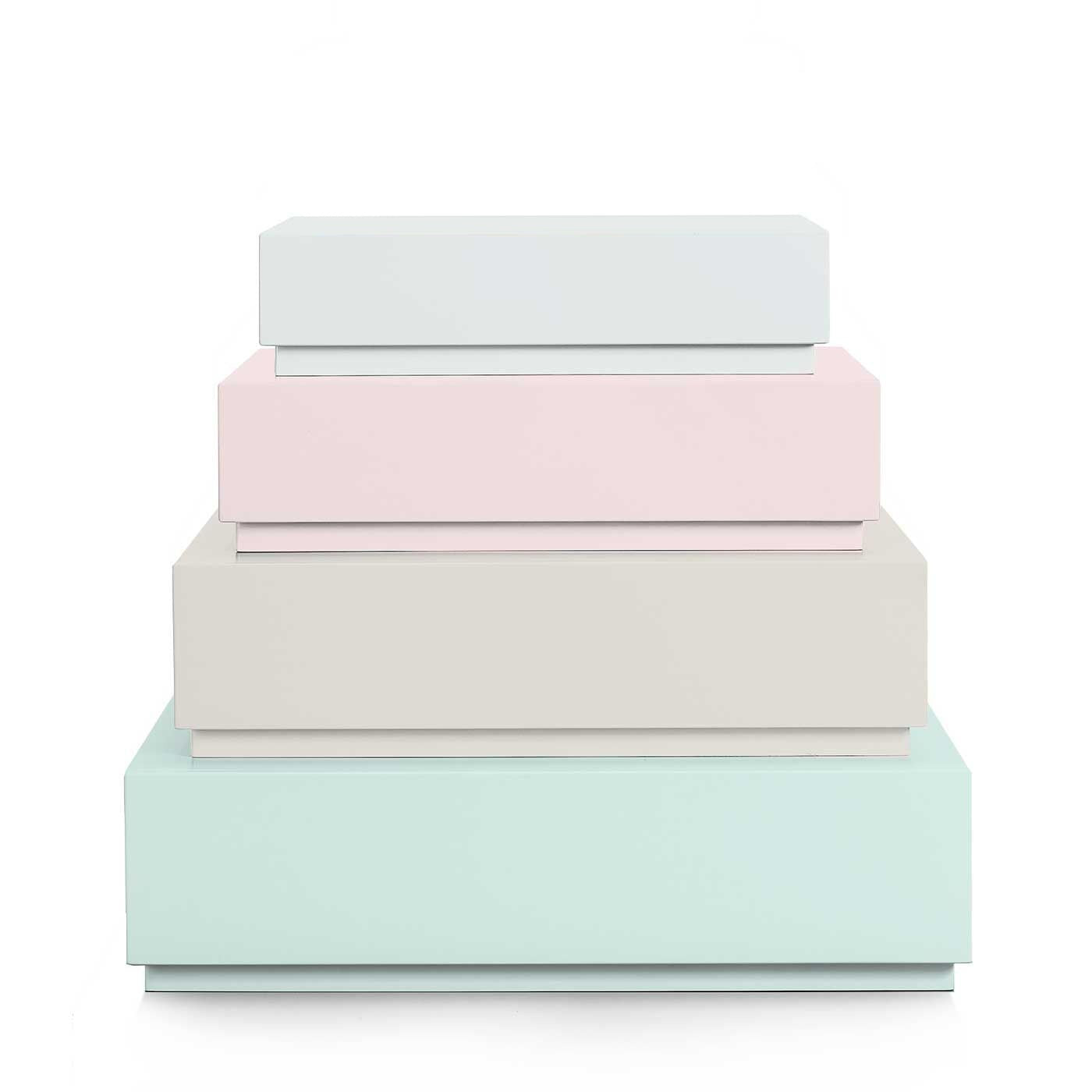 The 4-Piece Pyramid Colored, compact design is perfect for any size room. It provides ample space for clothing, toys, and other valuables. You can purchase drawer boxes separately to create your own combo!