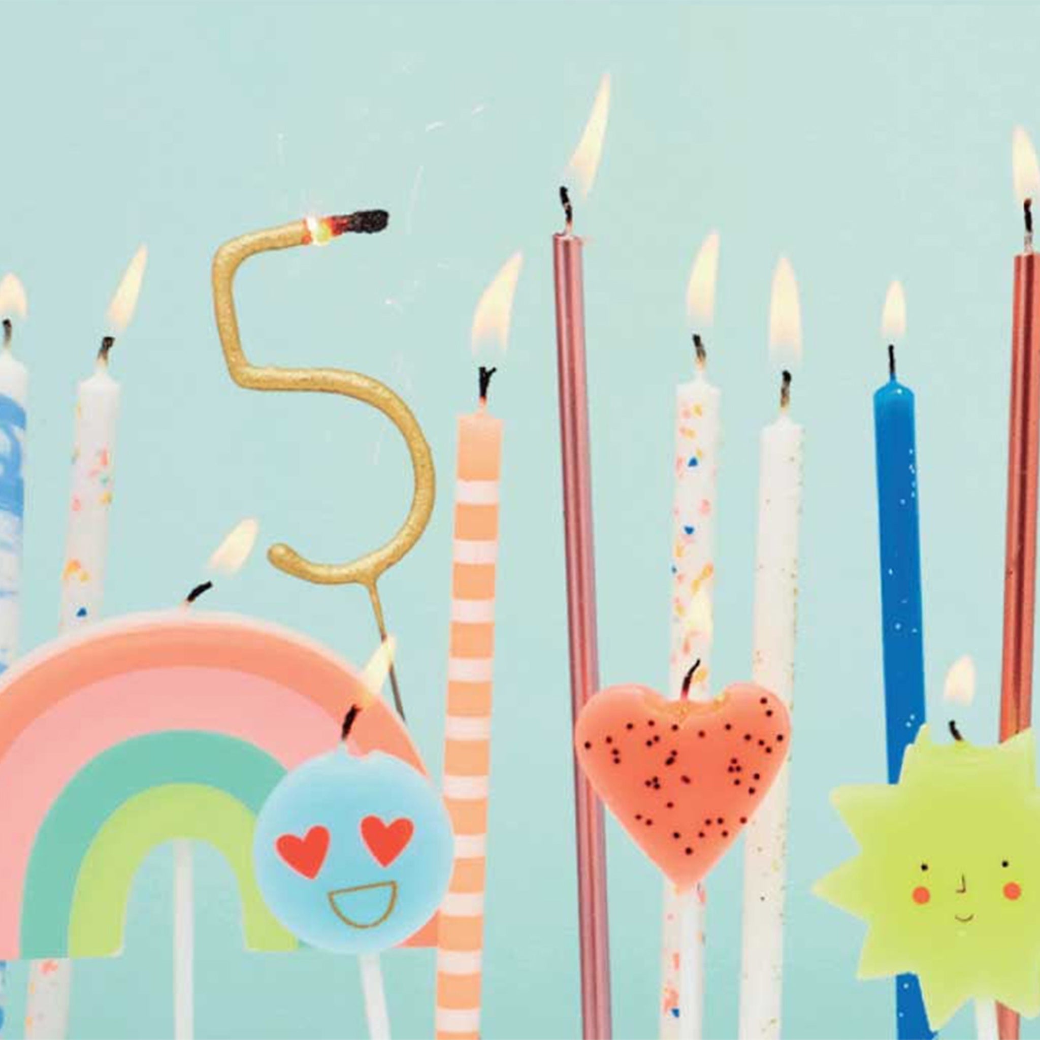 A party can't really be a party without a cake and candles. Make your party even more memorable with these cheerful emojis in pastel tones and shiny gold details!
