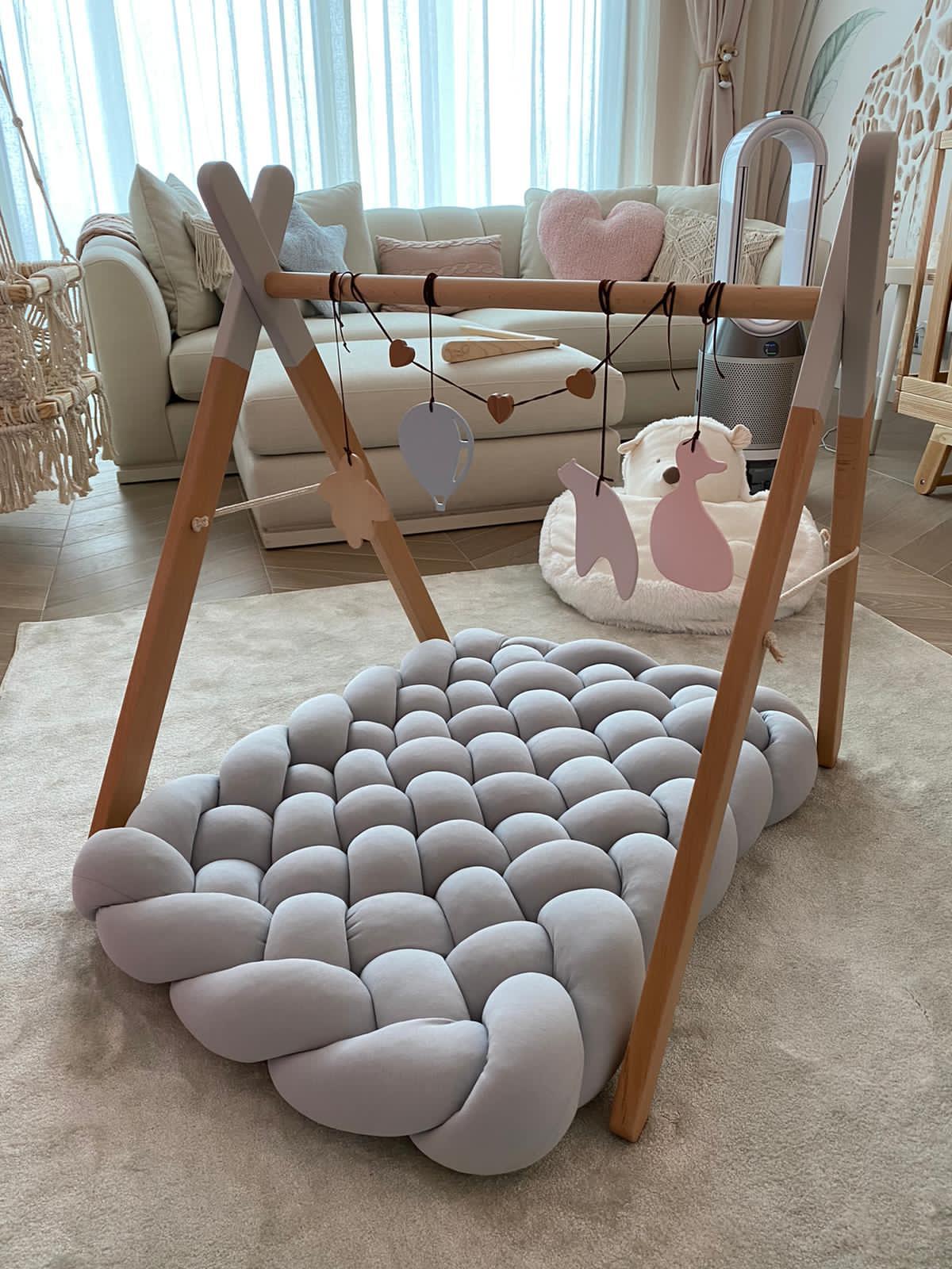 The size of the play area should be large enough to allow your baby to move comfortably, but also fit the space at home. Modular designs are useful for adjusting the area according to need. For safety, the edges should be covered with soft materials and have non-slip surfaces.