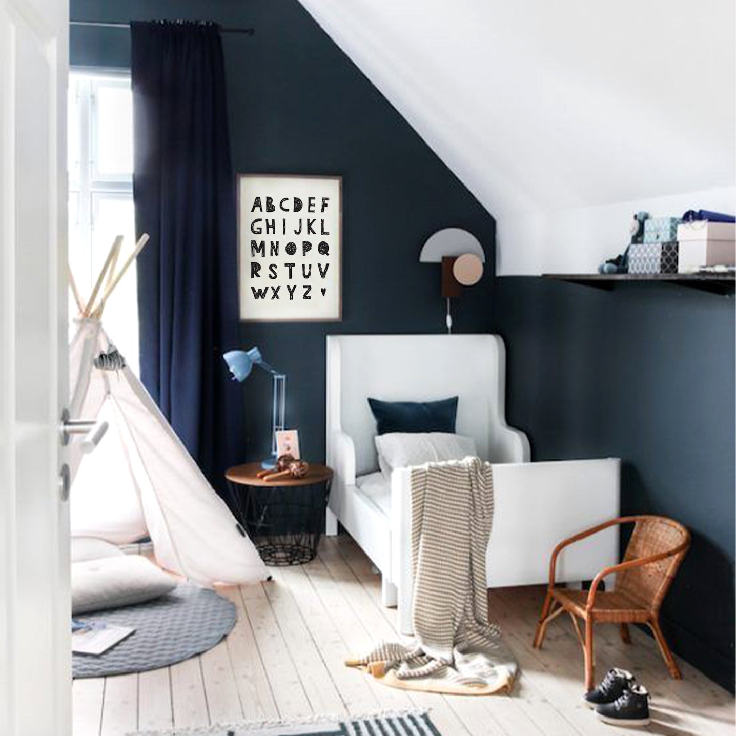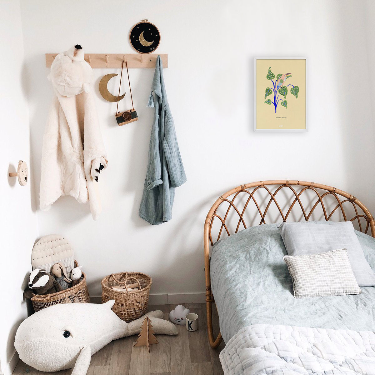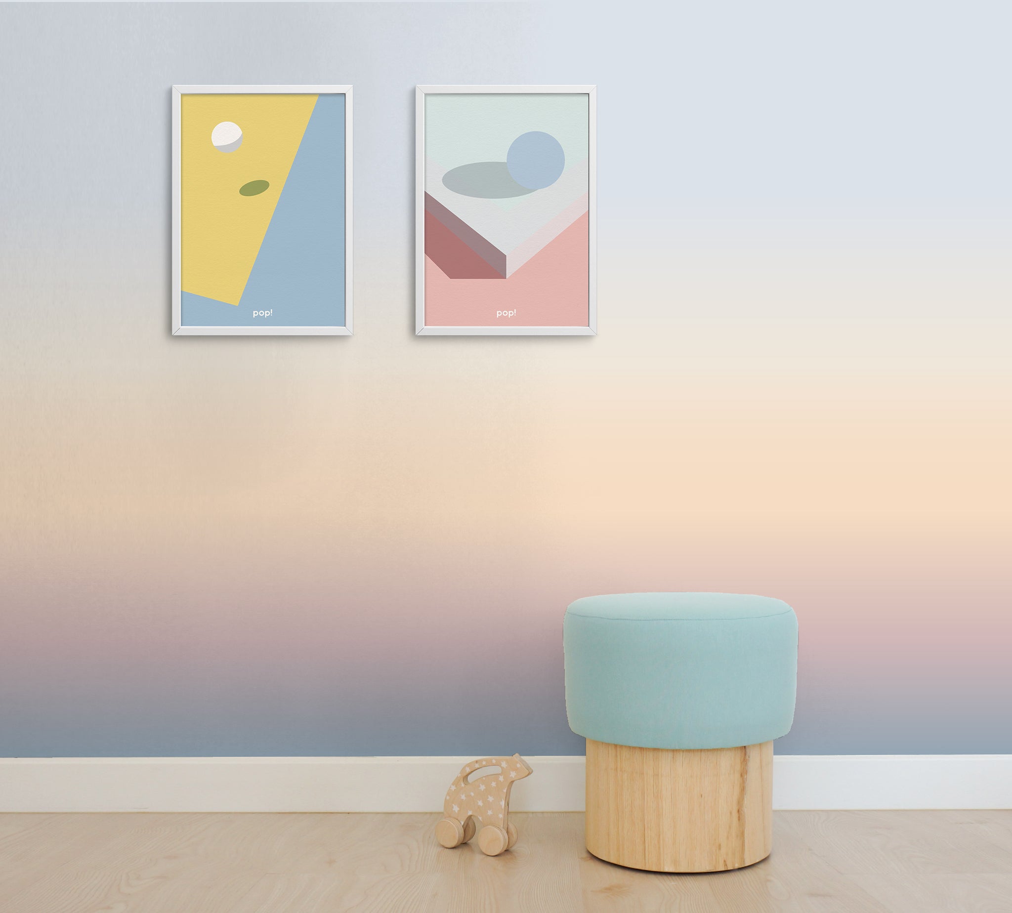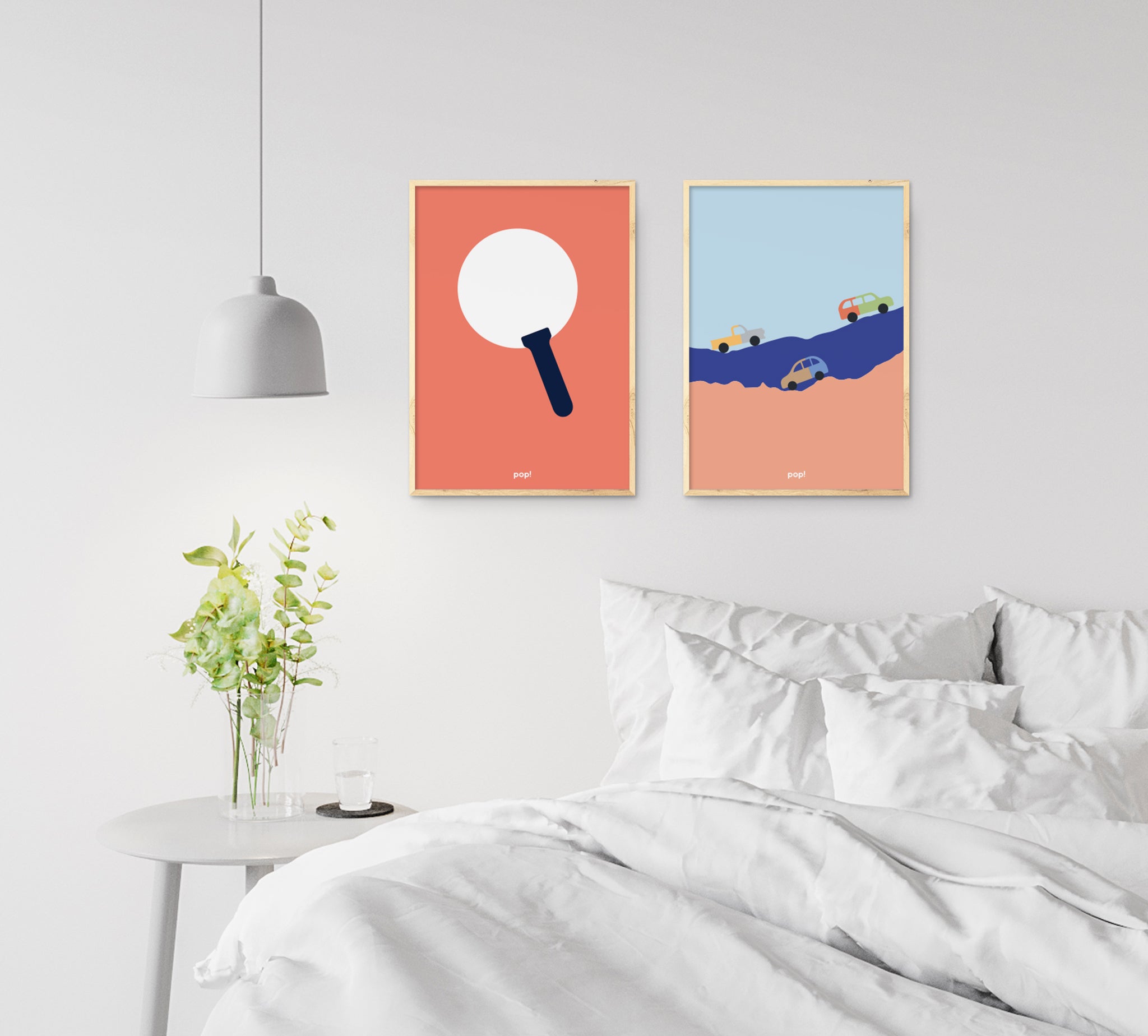 While calming and minimal designs are generally preferred for the baby room, more colorful and eye-catching posters are often preferred in the children's room.