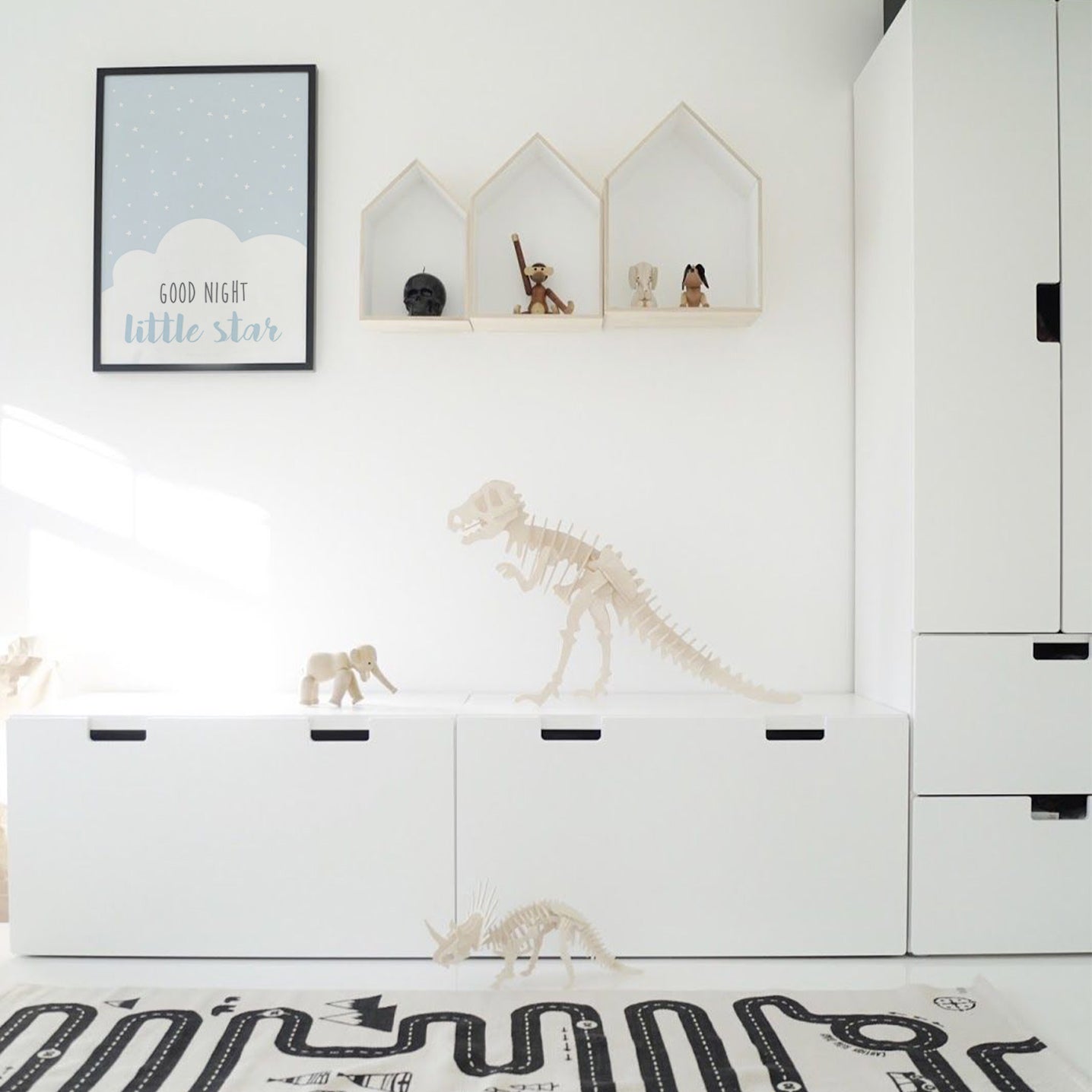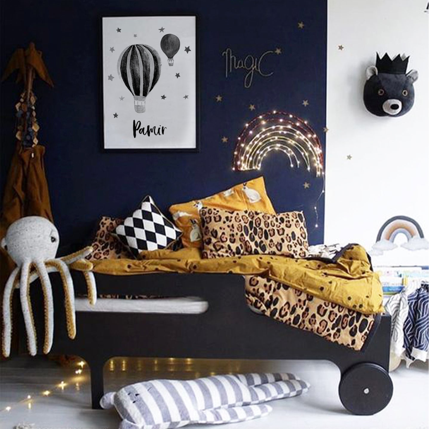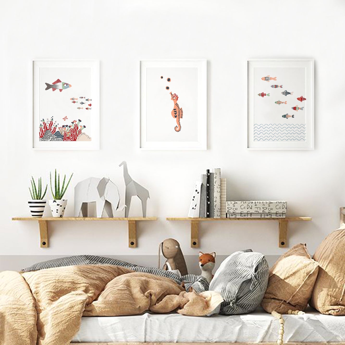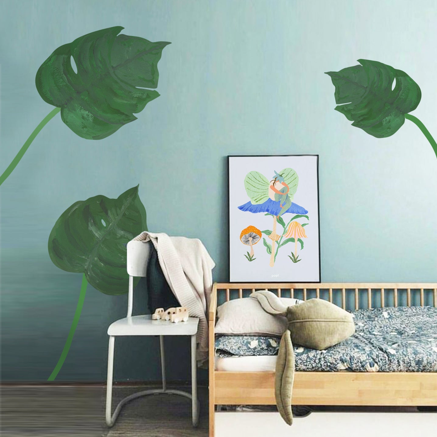 While calming and minimal designs are generally preferred for the baby room, more colorful and eye-catching posters are often preferred in the children's room.